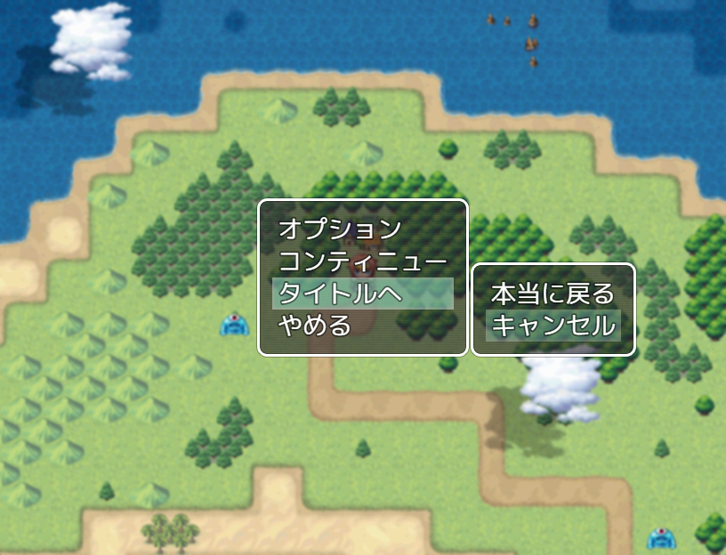 いきなりタイトル画面に戻るのではなく、一度確認ウィンドウを開くようにします。